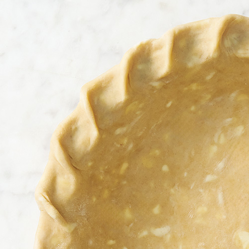Pie crust is the golden, flaky crown that turns filling into a masterpiece. Its flavor is not overly sweet, just slightly salty and rich to enhance a sweet fruit pie or a cheesy quiche. The texture: tender yet crisp, with flaky layers that melt in the mouth and are sturdy enough for a generous filling of berries, apples or chicken and vegetables. A perfect pie crust’s ingredients and methods are simple: With a food processor or a pastry blender, cut chilled fat (butter, shortening or lard) into flour, then add small amounts of ice-cold water, tablespoon by tablespoon, without overmixing. Gently mixing to pea- or bean-size bits will allow the fat to create airy pockets as the dough bakes. Chill the dough, then roll it out on a flour-dusted work surface. Ease it into the pan, trim the dough at the edges and save the trimmings to fashion decorative features. An egg wash brushed over the crust before baking yields a shiny, deep golden finish. Press dough trimmings together to make decorative edges and tops. These can be as simple as crimped edging for a rustic single-crust pie, or more elaborate additions, such as a braid or twisted rope edge, an intricate lattice top or artistic cutouts in various shapes. Whatever your style, you’ll come back to this recipe again and again.
