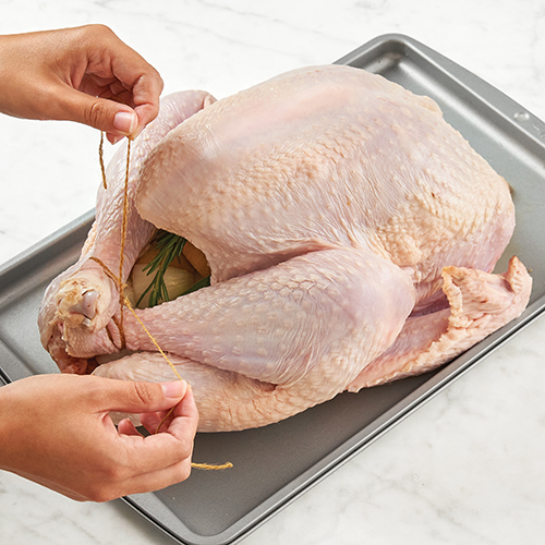Fresh or Frozen? Whole turkeys may be labeled “fresh” only if they have never been chilled below 26°F. Store a fresh turkey in its packaging in the refrigerator. Cook it within 2 days after purchasing. Turkeys chilled below 0°F must be labeled “frozen.” Frozen turkeys may be stored up to 1 year in the freezer. To thaw a frozen turkey, keep it in its packaging. Place it in the refrigerator on a rimmed tray or pan to catch any juices. Allow about 24 hours thawing time for every 4 to 5 pounds of turkey. If you’re short on time, you can safely thaw a frozen turkey in a cold-water bath. Make sure the water cannot leak through the plastic wrapping on the turkey. Submerge it in a sink filled with cold tap water (40°F to 45°F), changing the water every 30 minutes. Allow about 30 minutes per pound for this method, and cook the turkey immediately after it is thawed. Do not refreeze thawed turkeys.