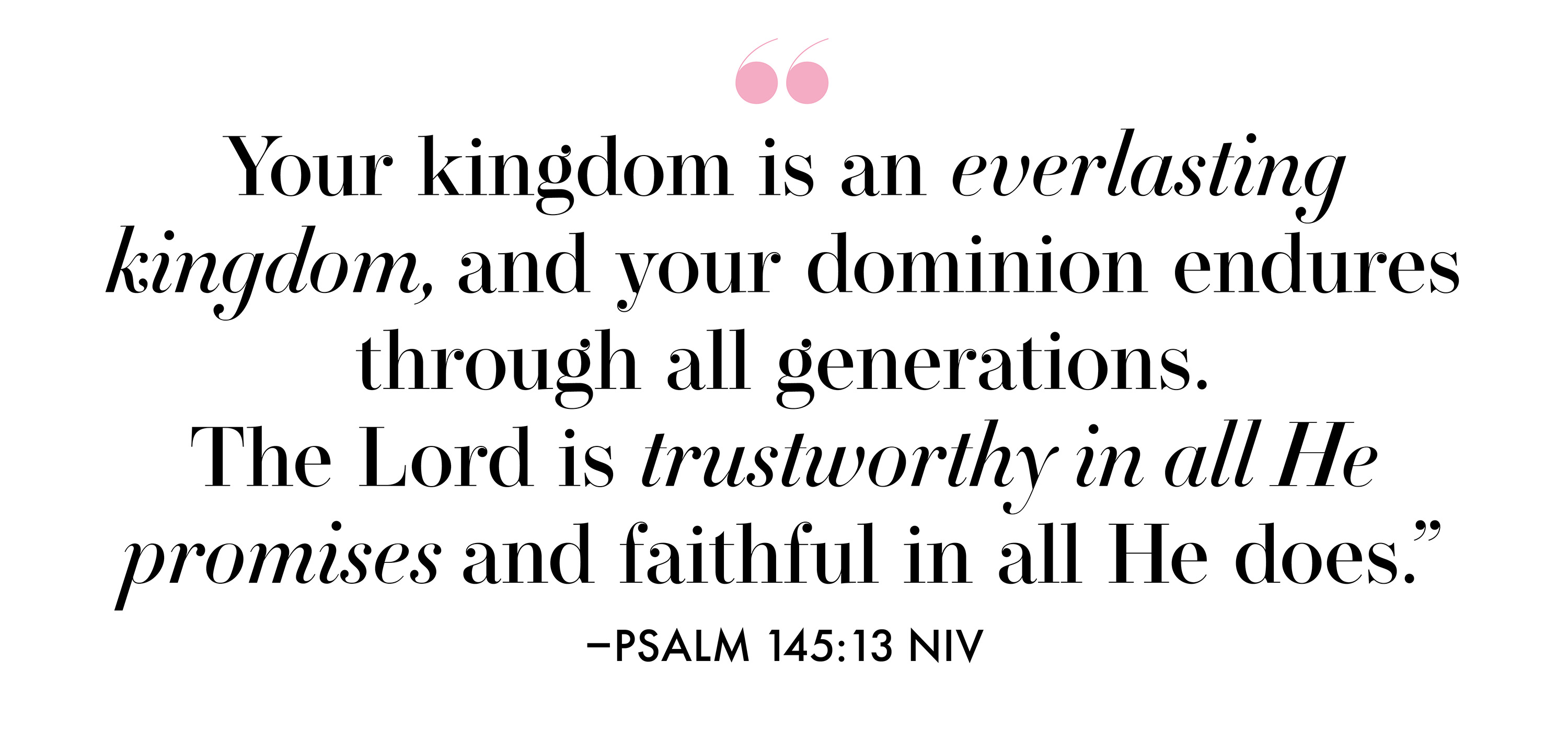When the Lord God Almighty is your dwelling place, you possess peace. You have guidance, protection, deliverance, spiritual blessings and eternal security. You will never be separated from His love. Although God doesn’t say we won’t have difficulties and challenges, He does tell us He’ll be with us in those times, rescuing, protecting or delivering us. He will always work on behalf of those who know Him and love Him. That is His promise to us, and He is faithful to keep all His promises (Psalm 145:13).