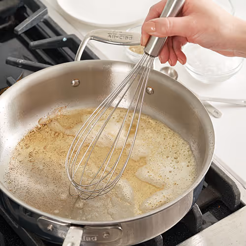 Roux: Béchamel starts with a roux, a sauce-thickening and flavoring agent of equal parts flour and fat. There are four types of roux based on color, which deepens with the cooking time: white, blond, brown and dark brown. Warm milk gets added to white roux to create béchamel.