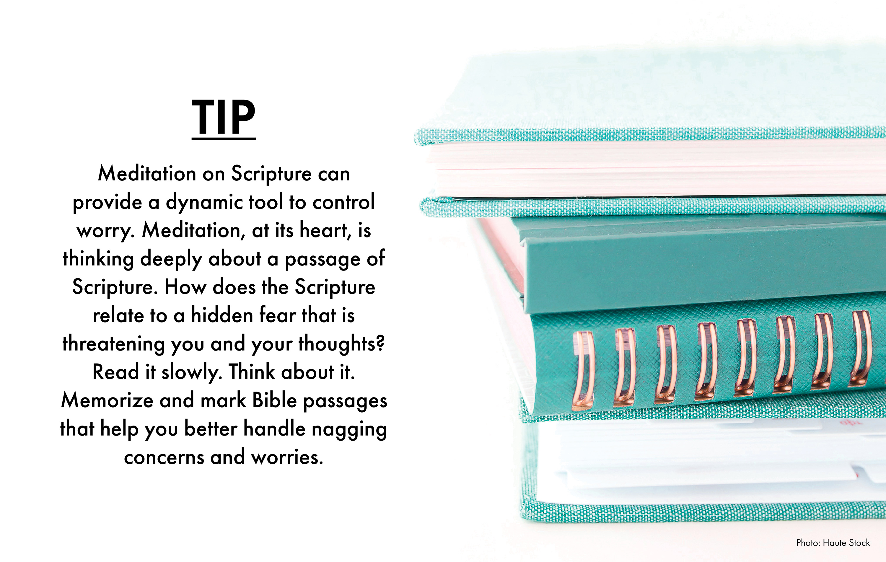 First, identify your fear. Worry can be generated by fears that we haven’t even identified. Common hidden fears include loss of relationships, rejection, harm or injury, illness, loss of control and security. God understands our fears. Sometimes we know our fears but are afraid to admit them or face them. Sometimes fears are hidden. Ask God to reveal to you what you may not be able to see for yourself.