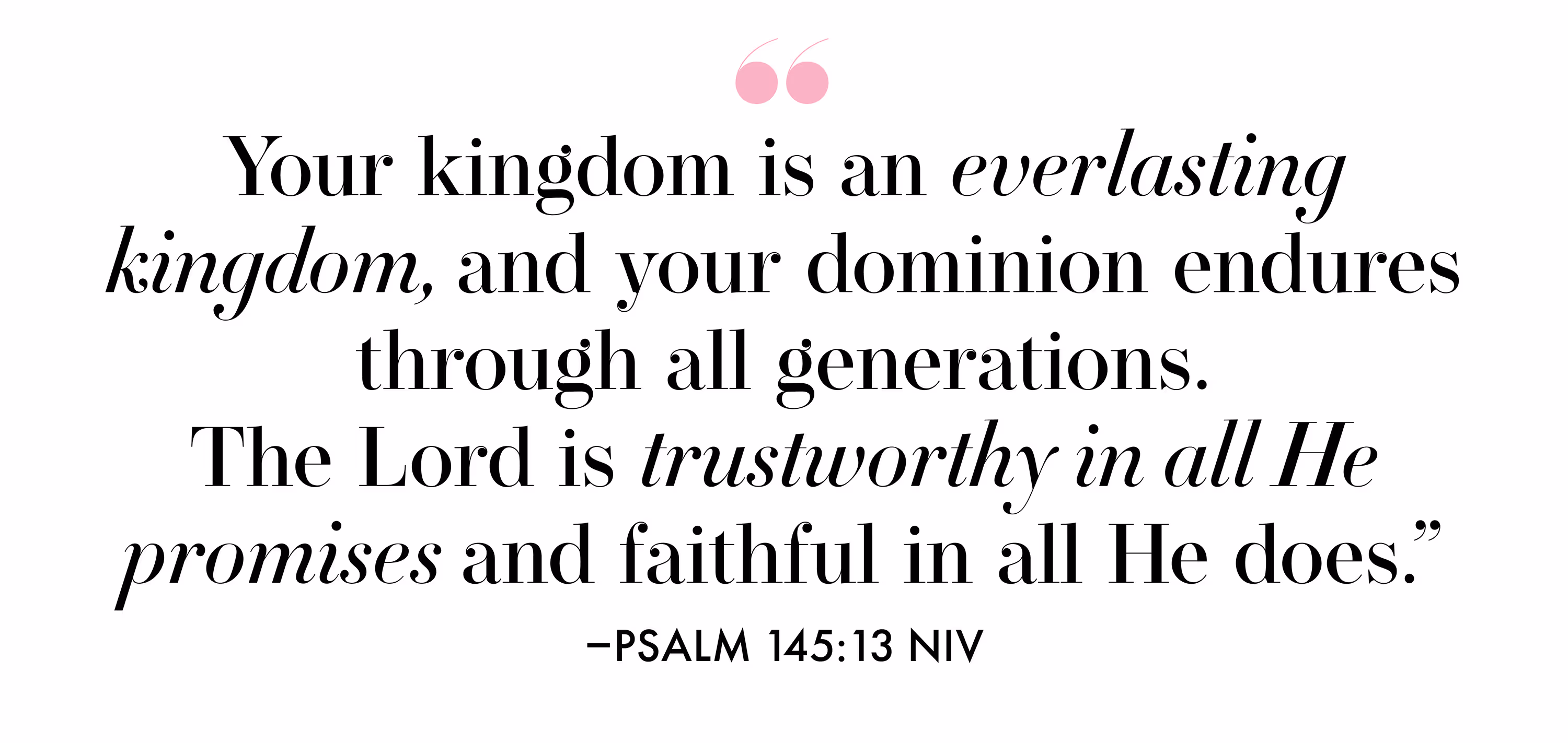 When the Lord God Almighty is your dwelling place, you possess peace. You have guidance, protection, deliverance, spiritual blessings and eternal security. You will never be separated from His love. Although God doesn’t say we won’t have difficulties and challenges, He does tell us He’ll be with us in those times, rescuing, protecting or delivering us. He will always work on behalf of those who know Him and love Him. That is His promise to us, and He is faithful to keep all His promises (Psalm 145:13).