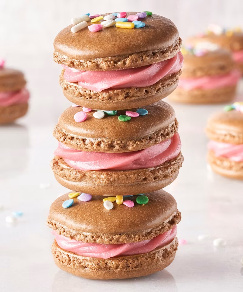 Light, crisp chocolate French macarons with soft, chewy centers and sweet raspberry buttercream—an elegant and irresistible confection for any celebration.