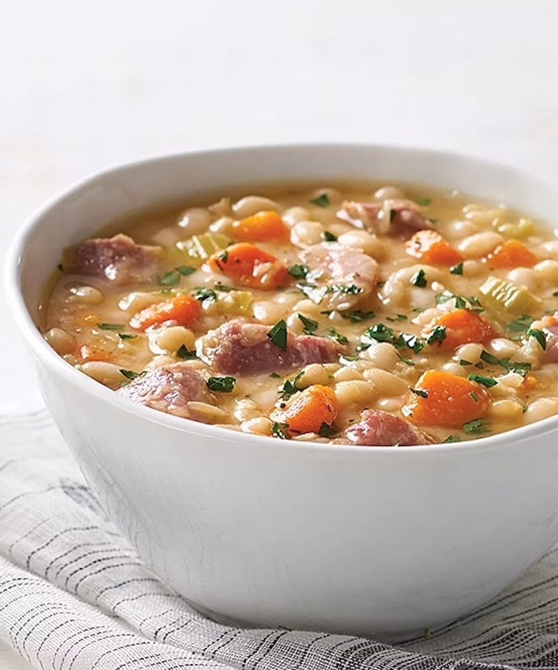 *Note: Purchase a 9- to 10-pound bone-in, smoked fully cooked ham and cut a 3½ -pound portion that includes the bone to use in the soup. Reserve remaining ham for another use.
