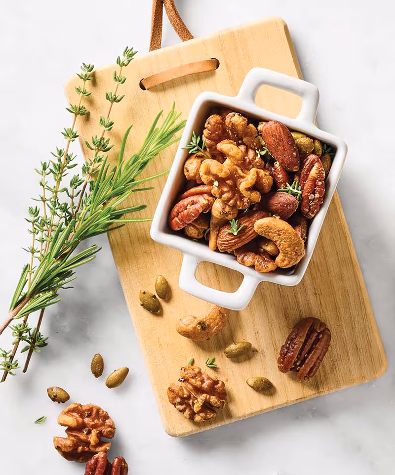 3 cups assorted unsalted shelled nuts and seeds, such as roasted pecans, walnuts, cashews, almonds and/or pumpkin seeds