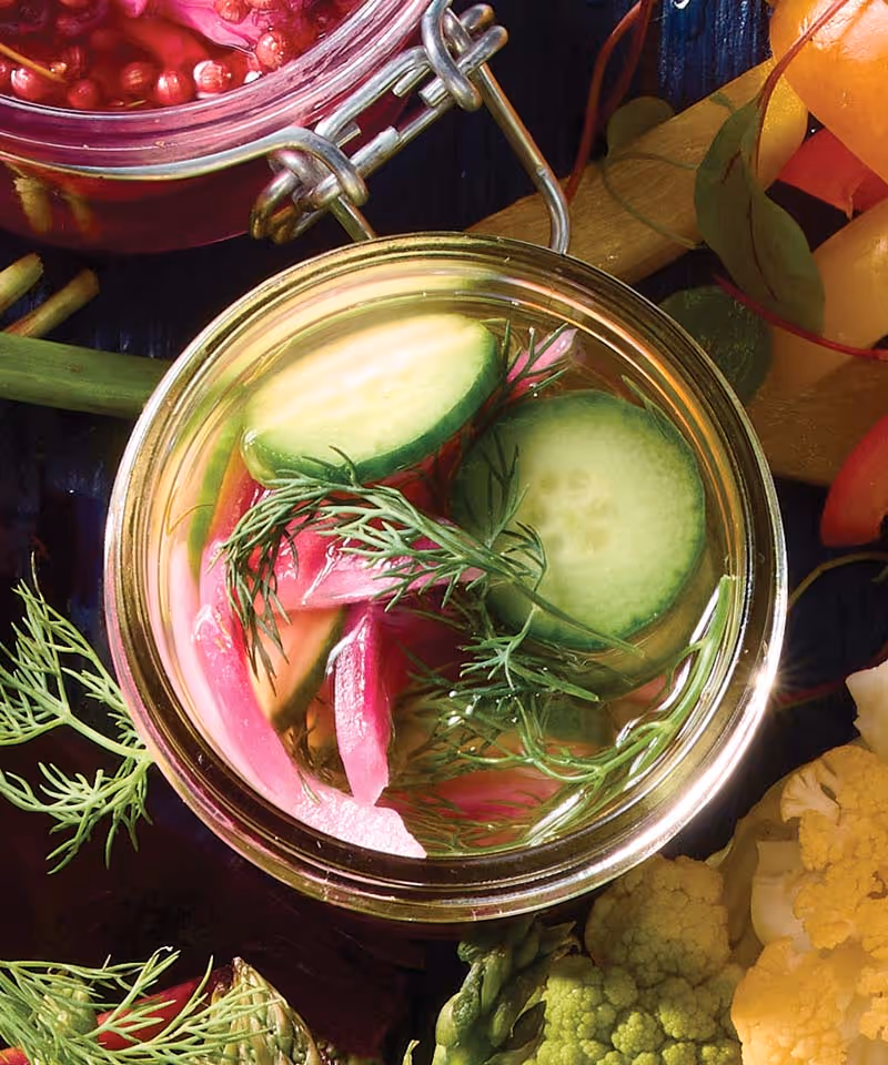 Pour hot brine over vegetables in jar. Cool to room temperature. Cover and refrigerate at least 2 hours or up to 2 weeks.