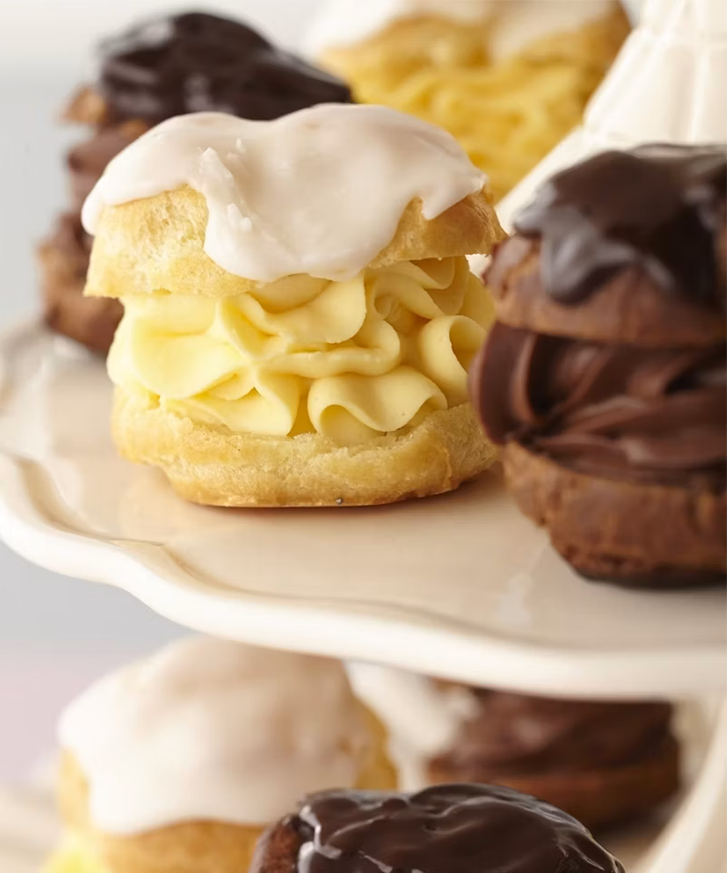 These classic vanilla cream puffs feature golden, airy puff shells filled with a luscious vanilla pudding whipped with cream for a light and creamy texture. Finished with a drizzle of vanilla icing, they make an elegant dessert for entertaining, celebrations, or simply a sweet indulgence at home.