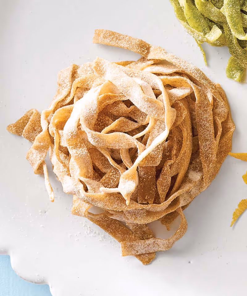 Homemade whole wheat tagliolini with a nutty flavor and firm texture, perfect for pairing with light sauces, vegetables, or hearty ragùs.